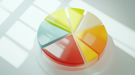 A vibrant pie chart displayed on a minimalist background, showcasing bright colors and geometric shapes, ideal for business presentations or data analysis.