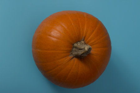 Ripe beautiful pumpkin on blue background