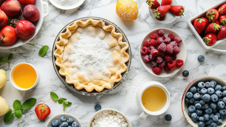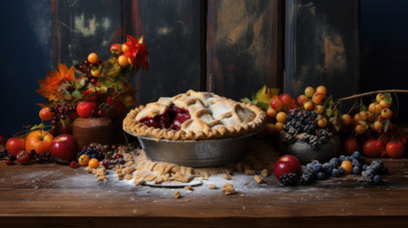 An image of a scrumptious pie created by hand and seen from above. Generative AI