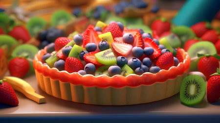 Delicious and vibrant fruit tart with assorted fruit toppings