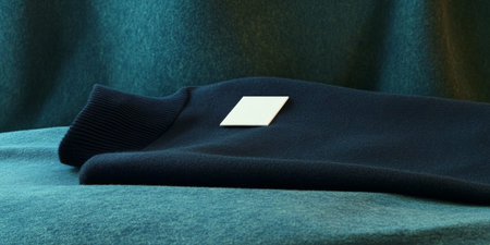 Minimalist Fashion Navy Sweater with Reflection on Teal Backdrop.