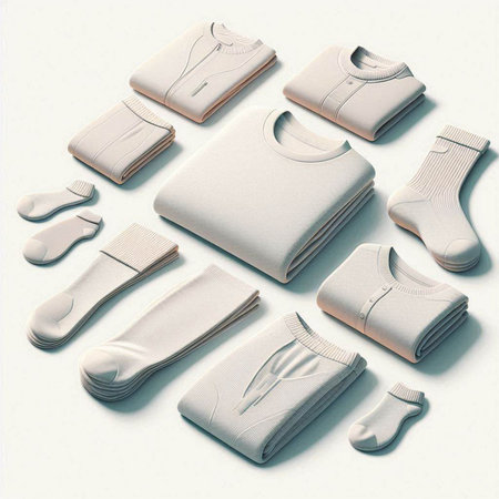 A collection of minimalist sportswear folded with care on a smooth table, perfect for athletic activities or relaxed dressing.