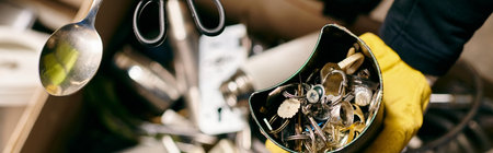 Blurred pile of metal parts can be background