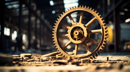 close-up of rusted gears and cogs in abandoned factory, created with generative ai
