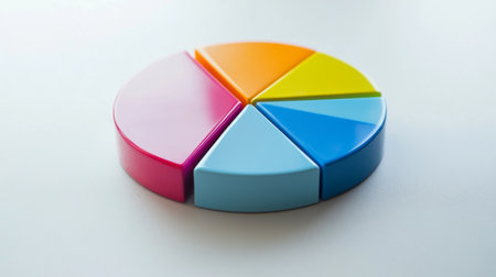 A colorful pie chart displayed on a smooth light background, ideal for data representation or business presentations. Perfect for marketing and creative projects.