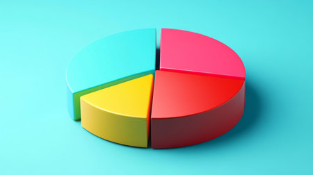 A vibrant 3D pie chart with colorful segments on a light background, ideal for business presentations, data analysis, and marketing visuals.