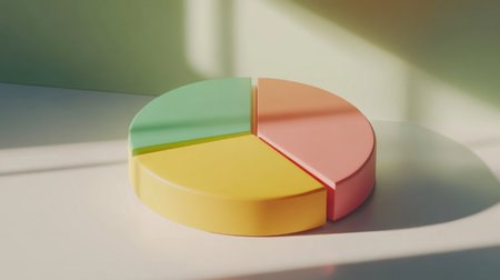 A minimalistic pie chart in soft pastel colors casts a gentle shadow on a surface, evoking a serene atmosphere ideal for data analysis and presentations.