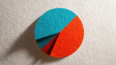 A vibrant pie chart with colorful segments resting on a textured surface. The interplay of light and shadow creates a striking visual effect, emphasizing creativity and design.