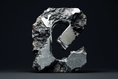 Digital artwork of small rough silver stone floating in the air on black background, minimalist, yk aesthetic, simple, modern, detailed photography