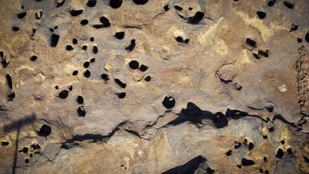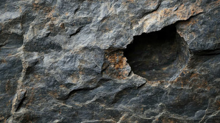 This image showcases a rugged rock surface with a prominent circular hole, highlighting natural geological features and textures found in outdoor landscapes.