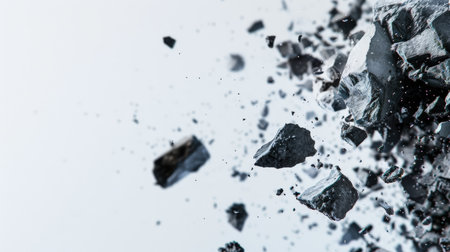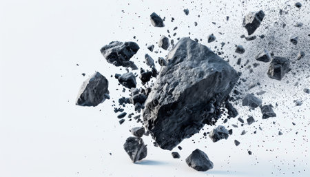 Falling stones against a white backdrop, highlighting the dynamic movement and texture of rock fragments