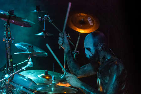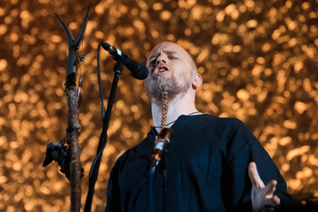 MOSCOW, RUSSIA - FEBRUARY 04, 2017: Norwegian folk nordic ethnic band Wardruna performing live at Yotaspace club on February 04, 2017 in Moscow, Russia