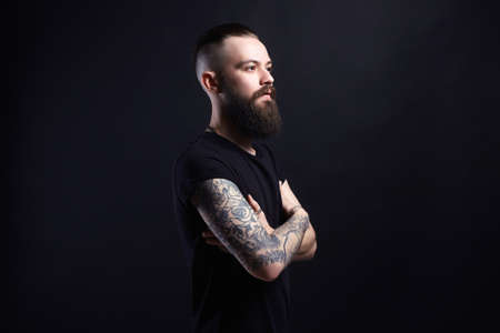 Boy with stylish haircut and tattoo. handsome Man, Tattoed bearded hipster