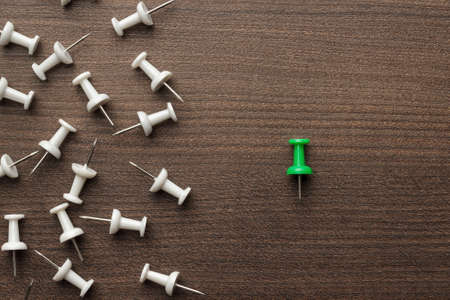 bright green push pin out of the crowd concept