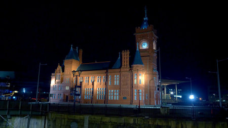 Pierhead at Mermaid Quay in Cardiff Wales at night - CARDIFF, WALES - DECEMBER 31, 2019