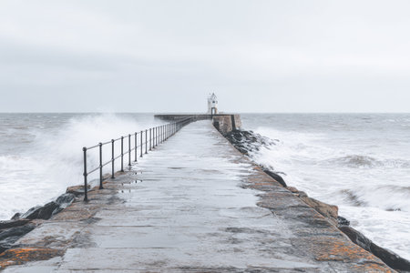 Tynemouth north pier at the mouth of the river Tyne protected by two piers