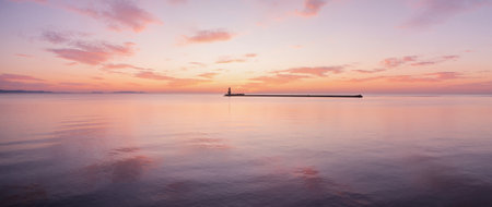 Panoramic view of a lighthouse in the Baltic Sea at sunset
