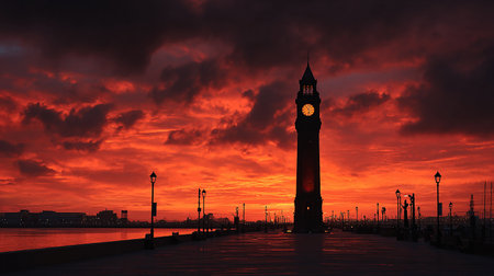 Big Ben at sunset in London, England. Beautiful sky background.