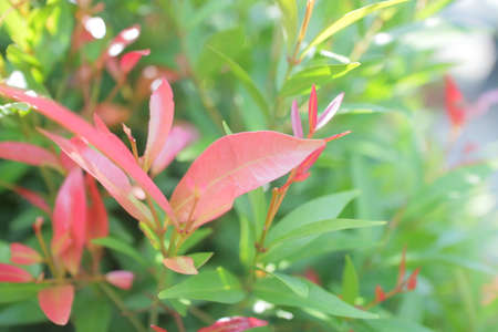 red plant with green leaves in nature on the light background, note shallow depth of field