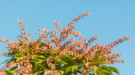 Japanese pieris plant blossoms in spring. Close view.