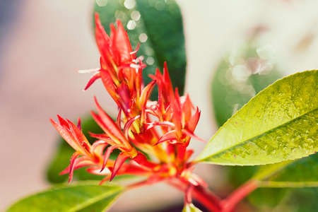 The red fiery leaves of a forest flame bush.