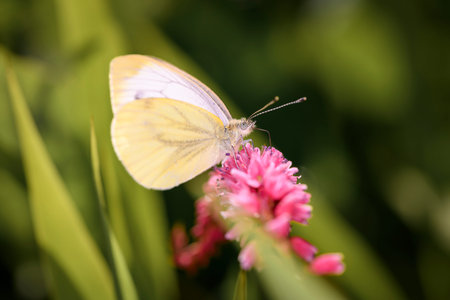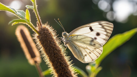 Butterfly on a plant in the garden. Selective focus.