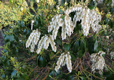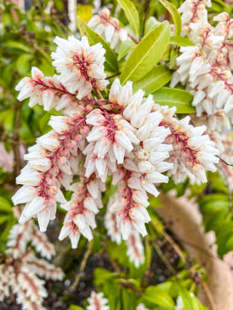Pieris japonica Gavotte blooming in spring in the botany.