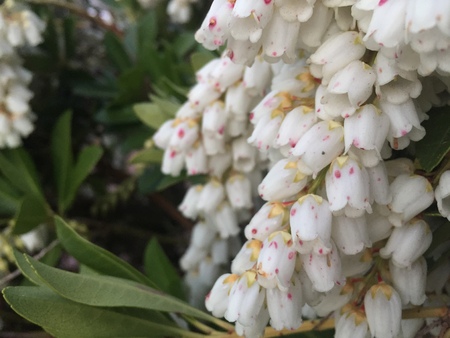 Blossoms of a Japanese andromeda bush, Pieris japonica.