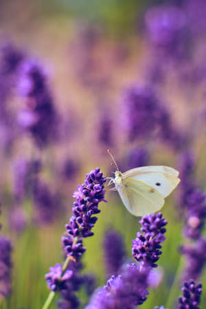 Aromatic beautiful lavender field with white butterfly