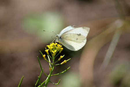 Small white butterfly genus Pieridae sitting on flower. Nature background.