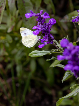 Cabbage white - pieris rapae butterfly on Salvia farinacea - mealycup sage.