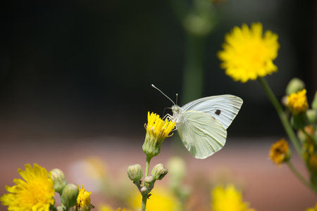 Cabbage White Pieris rapae butterfly harvesting pollen