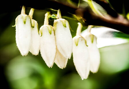 Japanese andromeda (Pieris Japonica) flowers.Ericaceae evergreen shrub and toxic plants. Many white pot-shaped flowers bloom from March to May.