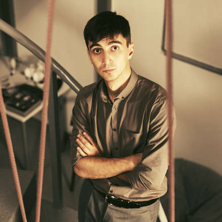 portrait of a self-confident young man standing in the shadow