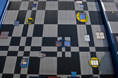detail of the colorful community heating plant designed by Hundertwasser in Vienna