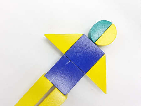 top view of tetragonal blue and yellow blocks on white background, ukrainian concept, banner