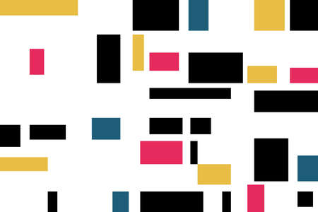 Abstract background pattern made with colorful geometric shapes (rectangles). Modern, vibrant, bold and playful vector art in red, yellow, blue and black colors.