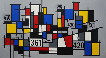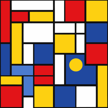 A fun, bright and colorful color composition, in the style of the De Stijl movement.