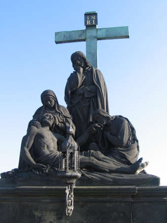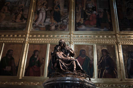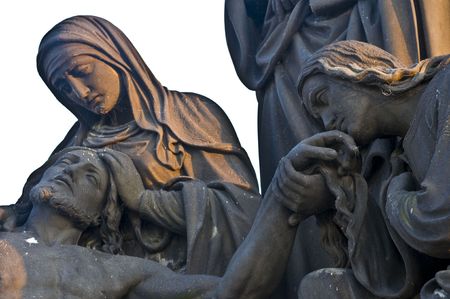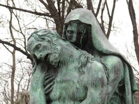 Jesus Christ and Virgin Mary bronze statue. Jesus died in the arms of the Madonna.