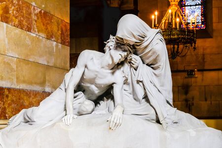 MARSEILLE, FRANCE - AUGUST 11, 2018: Cathedral of Saint Mary Major, Roman Catholic Marseeille Cathedral, sculpture Pieta