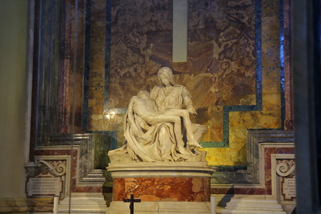 La pieta sculpture, one of the most famous michelangelo masterpiece artwork located in st peters bailisica at Vatican city.