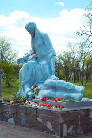 Bolshaya Kostromka, Dnepropetrovsk region, Ukraine - 09/05/2021: Monument to the soldiers who died during the liberation of the village from the Nazi invaders in Second World War.