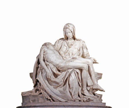 The Madonna della Pieta (La Pieta), marble sculpture of Jesus and Mary at Mount Golgotha representing the Sixth Sorrow of the Blessed Virgin Mary by Michelangelo Buonarroti