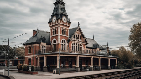 Vintage European Architecture with Tower and Ornate Windows Surrounded by Fall Leaves