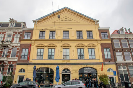 Amsterdam, Holland - Oct 7, 2018. People walk on street in Amsterdam, Netherlands. Amsterdam is one of the most famous tourist cities in Europe.