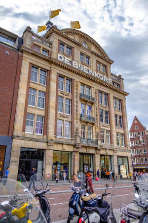 Amsterdam / Netherlands - October 15, 2018: De Bijenkorf flagship store on Dam Square in Amsterdam, Netherlands. De Bijenkorf is a chain of high-end department stores.