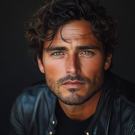 Close-up portrait of a charismatic sensual male in a black sweater