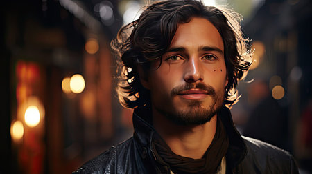 Portrait of handsome bearded man thinking outdoors at night