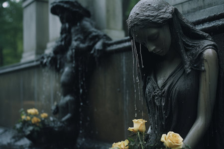 female religious statue at a cemetery