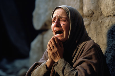 Woman Overcome with Sadness and Grief on a Dark Studio Background